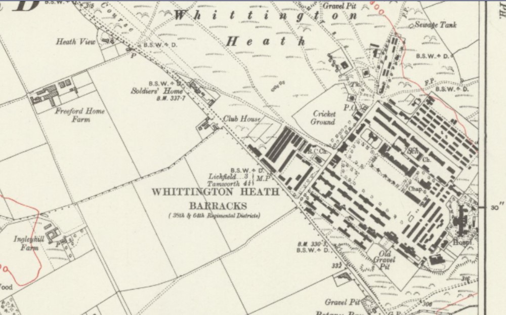 August 1914 : in Lichfield. Moved on mobilisation to Fort George at Guernsey. Went on to Marske in October 1916 and by March 1917 was at Saltburn.