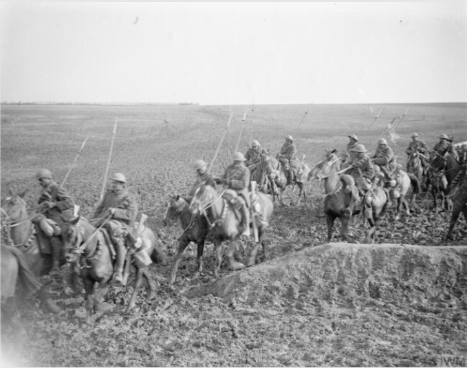 Imperial War Museum photograph Q5062 “An Indian cavalry patrol armed with lances advancing over open country near Mory, France, March 1917.” This was during the German withdrawal from the Somme to the Hindenburg Line.