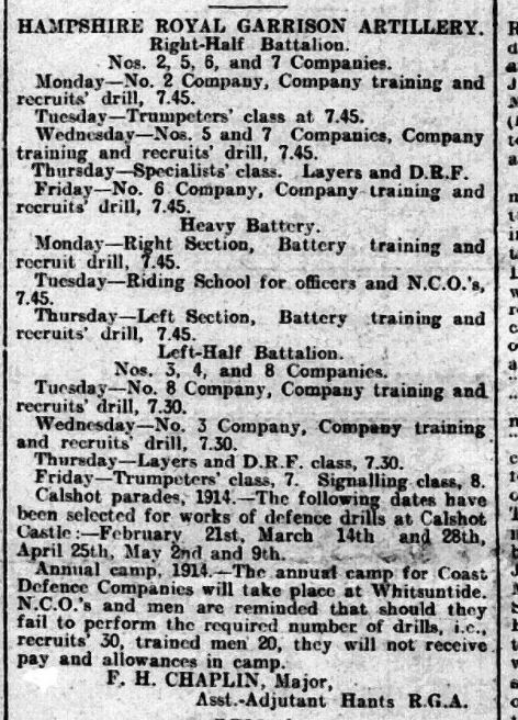 In January 1914 newspapers reported much discussion about whether the Royal Navy should take over responsibility for coastal defence work and what would happen to the RGA if it did, but this was overtaken by events and it remained the responsibility of the RGA throughout the Great War.