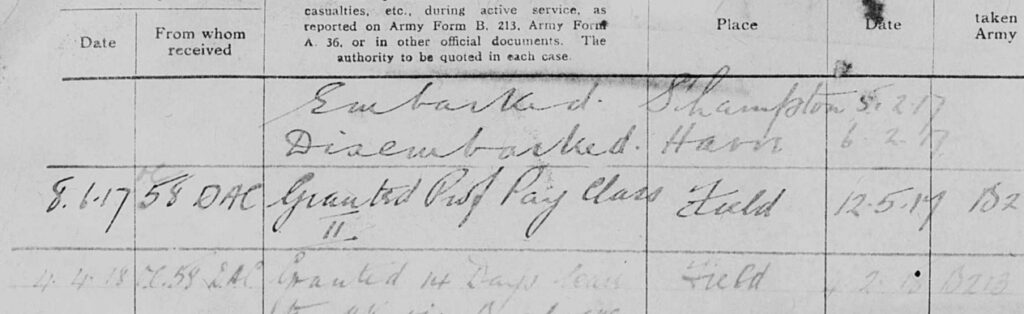 For the purposes of study of men who served in the Great War, we can begin with a change in regulations that came into effect from 1 October 1906. It defined two classes of proficiency pay, known as Class I and Class II, to be paid at a rate of sixpence per day and threepence per day respectively, over and above the man’s regimental or corps pay.